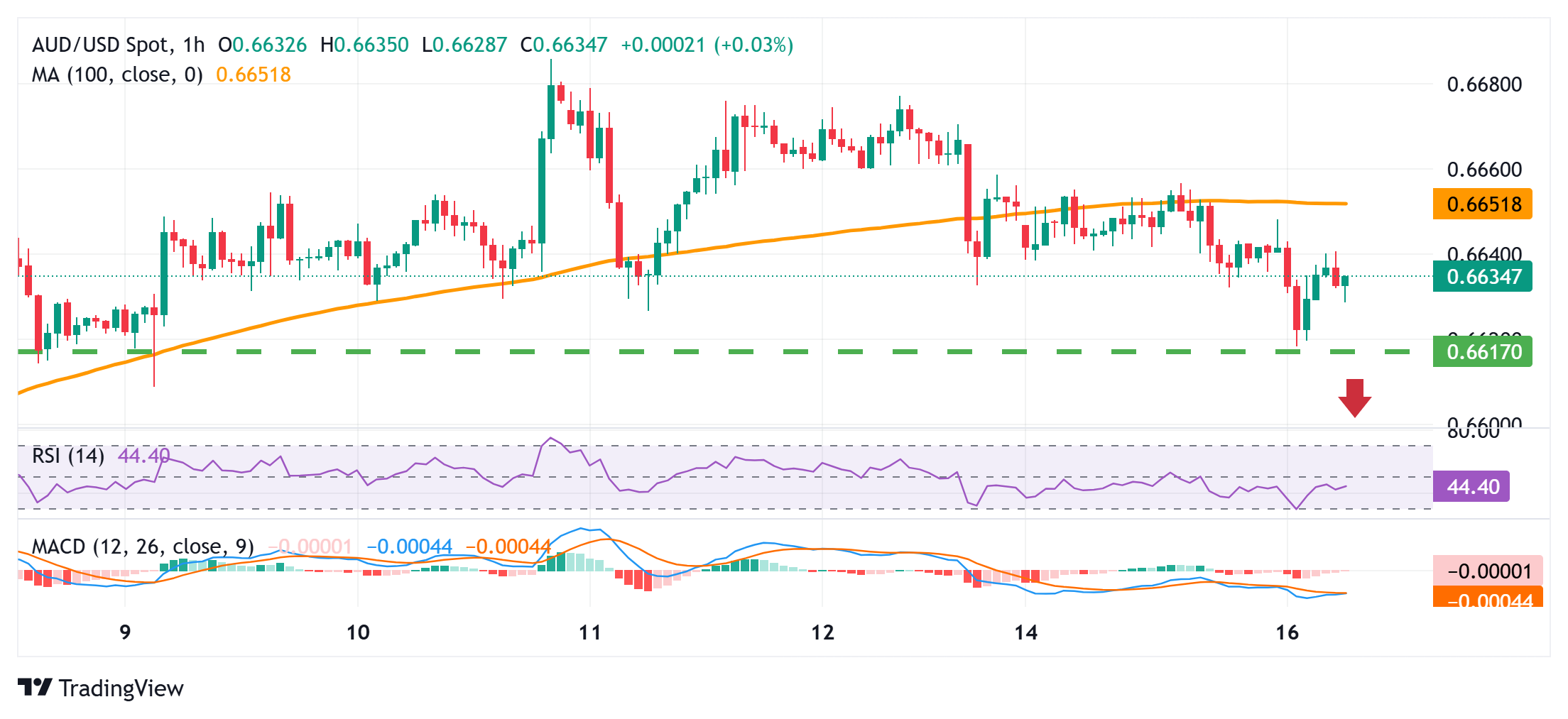 The AUD/USD pair prolongs last week's retracement slide from a nearly three-month peak, around the 0.6685 region, and drifts lower for the fourth straight day on Tuesday. Spot prices, however, recover a few pips from a one-week low, touched during the Asian session, and currently trade around the 0.6630-0.6635 region, down less than 0.10% for the day.
